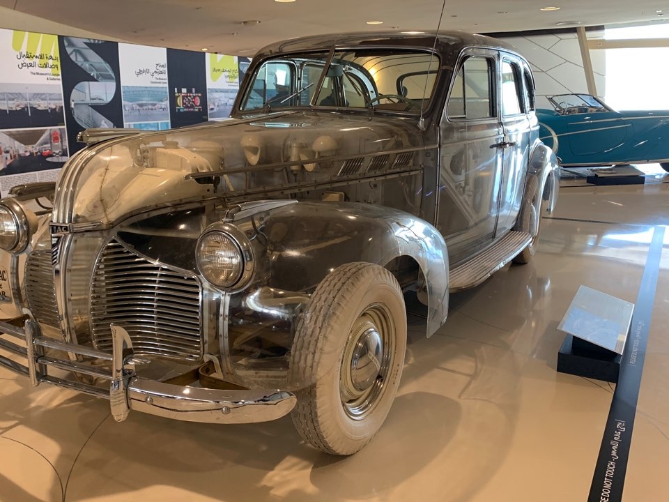 | ▲ 자동차 박물관 프로젝트도 시작 (도하=연합뉴스) 김예나 기자 = 지난 23일(현지시간) 카타르 국립중앙박물관 전시 공간에 마련된 자동차 박물관 프로젝트 관련 내용. 차는 폰티악 플렉시글라스 디럭스 식스(Pontiac Plexiglas Deluxe Six), 통칭 '고스트카'(Ghost Car)로 불리는 모델이다. 2022.10.27 yes@yna.co.kr |