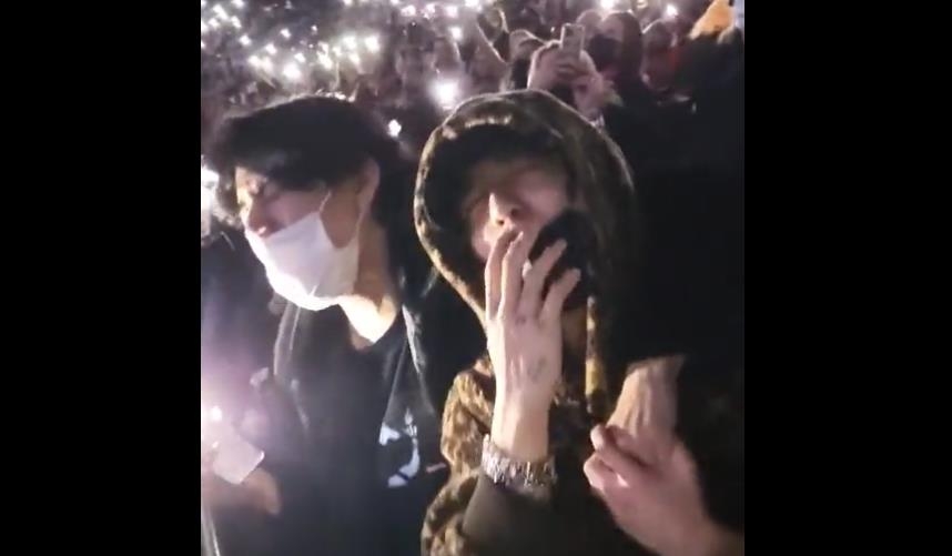(로스앤젤레스=연합뉴스) 정윤섭 특파원 = 2년 만의 대면 콘서트 개최를 위해 미국 로스앤젤레스(LA)를 방문한 방탄소년단(BTS)이 동료 팝스타의 공연을 즐기는 장면이 포착됐다.
