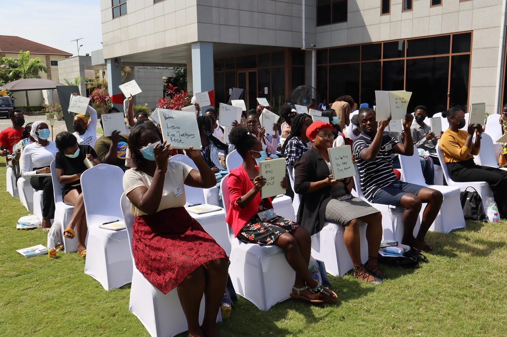 | ▲ 서아프리카 가나에서 개최된 '퀴즈 온 코리아' (요하네스버그=연합뉴스) 지난 4일(현지시간) 주가나대사관 대사 관저에서 개최된 '퀴즈 온 코리아' 대회 장면. 모두 43명의 가나인이 참가해 한국 문화에 대한 높은 관심과 열의를 보여주었다. 특히 한국의 역사, 문화, 지리 등 다양한 주제와 관련해 높은 난도의 문제가 출제되었음에도 불구하고 치열한 접전 끝에 최종 우승자(Selorm Abla Afeke)를 포함, 입상자 5명이 선정됐다. 수상자들은 삼성 핸드폰, 무선이어폰 및 블루투스 스피커를 부상으로 받았다. [주가나 대사관 제공·재판매 및 DB 금지] 2022.10.7 photo@yna.co.kr |