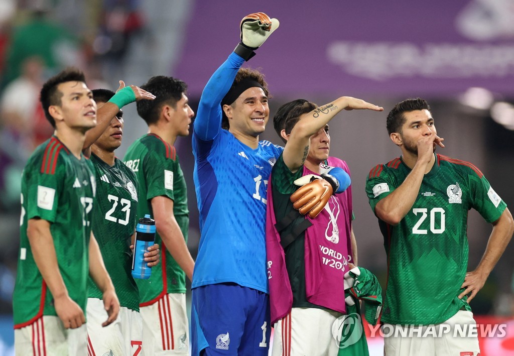 | ▲ 무승부 후 기뻐하는 멕시코 오초아 골키퍼(파란색 유니폼) [로이터=연합뉴스] |