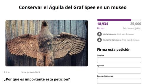 | ▲ '그라프 슈페 독수리상을 박물관에 보내 보존하자' 온라인 청원 [change.org 웹사이트 청원 글 캡처. 재판매 및 DB 금지] |