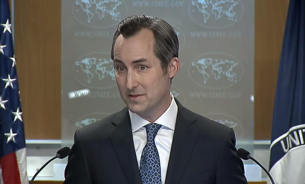 | ▲ State Department Press Secretary Matthew Miller is seen answering questions during a daily press briefing at the department in Washington on June 15, 2023 in this captured image. (Yonhap) |