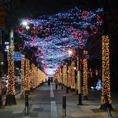 대구 중구 국채보상운동기념공원과 2·28기념중앙공원 가로변에 설치된 하트 조명과 하트 터널, 수목은하수, 종각네거리의 코로나19 극복을 위한 희망 문자가 화려한 빛으로 시민들의 눈길을 사로잡고 있다.