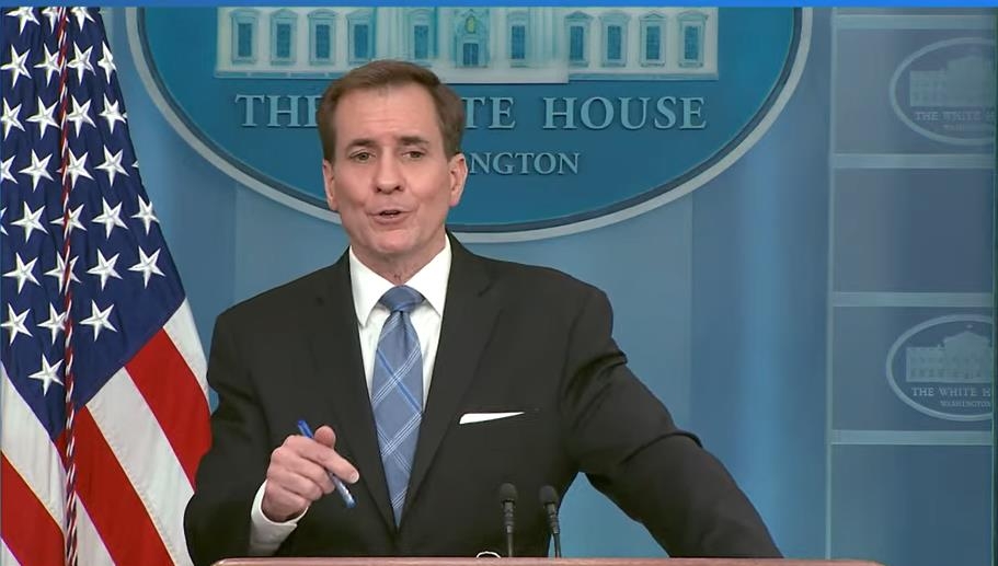▲ John Kirby, National Security Council coordinator for strategic communications, is seen speaking during a press briefing at the White House in Washington on April 6, 2023 in this captured image. (Yonhap)
