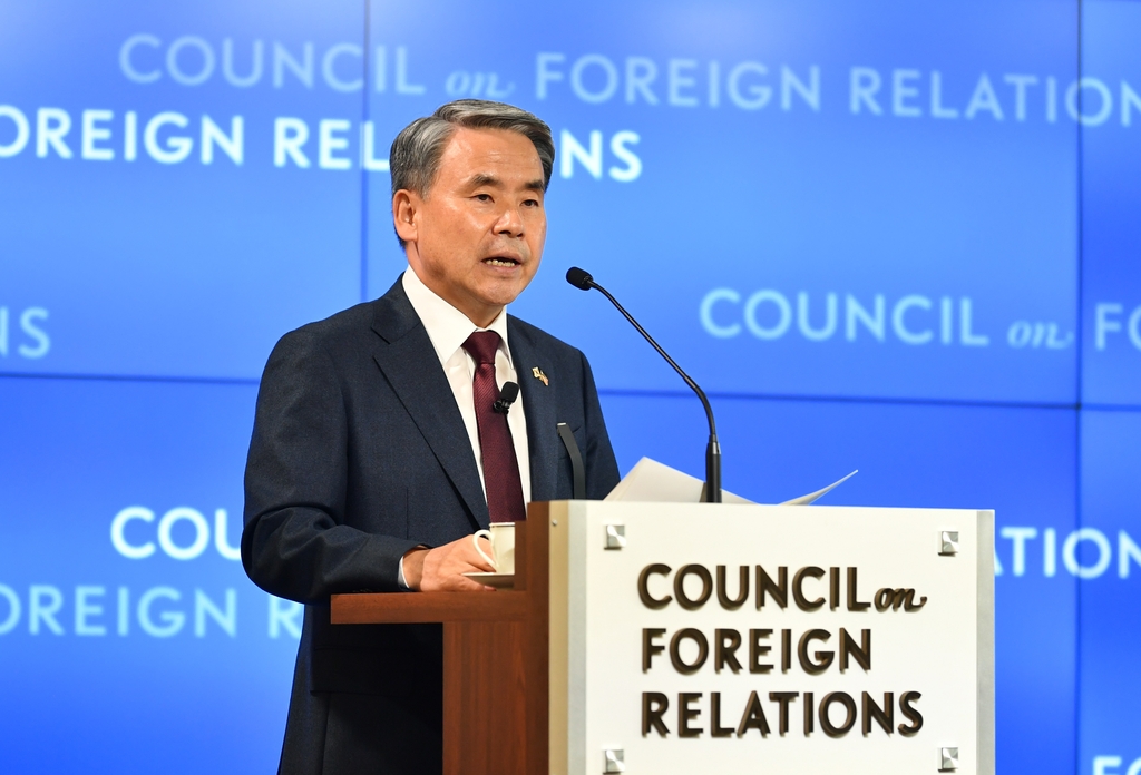 Lee made the remarks during a keynote speech in a meeting with experts at the Council on Foreign Relations on the eve of annual South Korea-U.S. defense ministerial talks, called the Security Consultative Meeting, at the Pentagon.