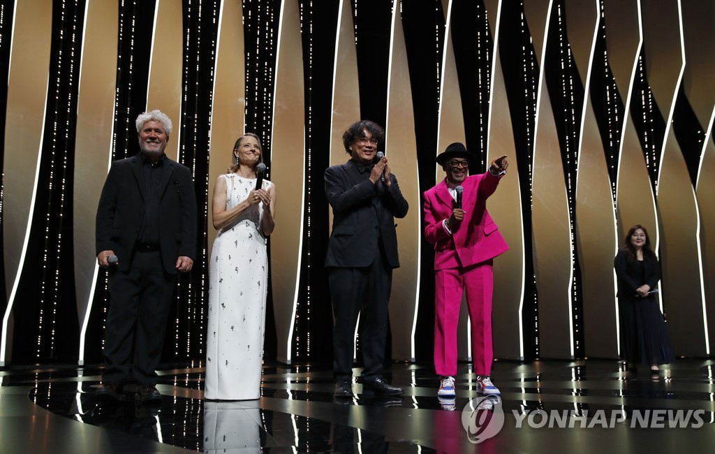 | ▲ 칸 영화제 개막 선언하는 스페인 영화감독 페드로 알모도바르, 미국 배우 조디 포스터, 봉준호 감독, 스파이크 리 감독[AFP=연합뉴스] |