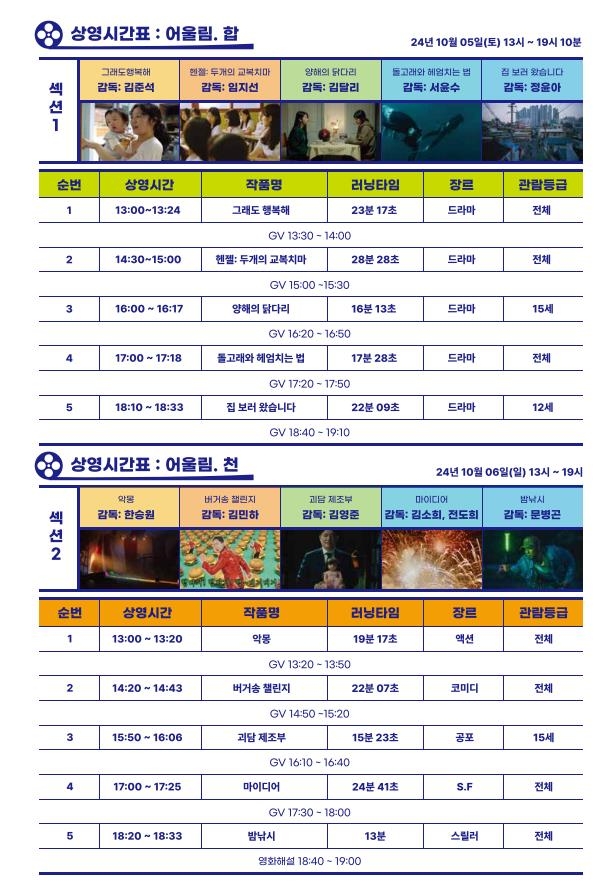 | ▲ 제5회 수려한합천영화제 초청작 상영시간표 [경남 합천군 제공. 재판매 및 DB 금지] |
