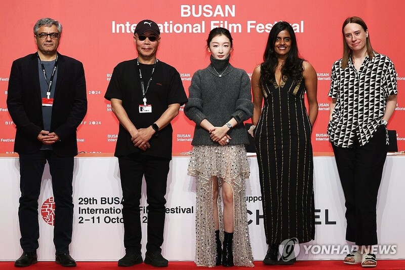 | ▲ 모두 모인 뉴 커런츠 심사위원 (부산=연합뉴스) 진연수 기자 = 4일 오전 부산 해운대구 신세계백화점 센텀시티점 문화홀에서 열린 제29회 부산국제영화제(BIFF) 뉴 커런츠 심사위원 기자회견에서 심사위원들이 포토타임을 갖고 있다. 왼쪽부터 모함마드 라술로프 감독, 이명세 감독, 배우 주동우, 배우 카니 쿠스르티, 바냐 칼루제르치치 로테르담영화제 집행위원장. 2024.10.4 jin90@yna.co.kr |