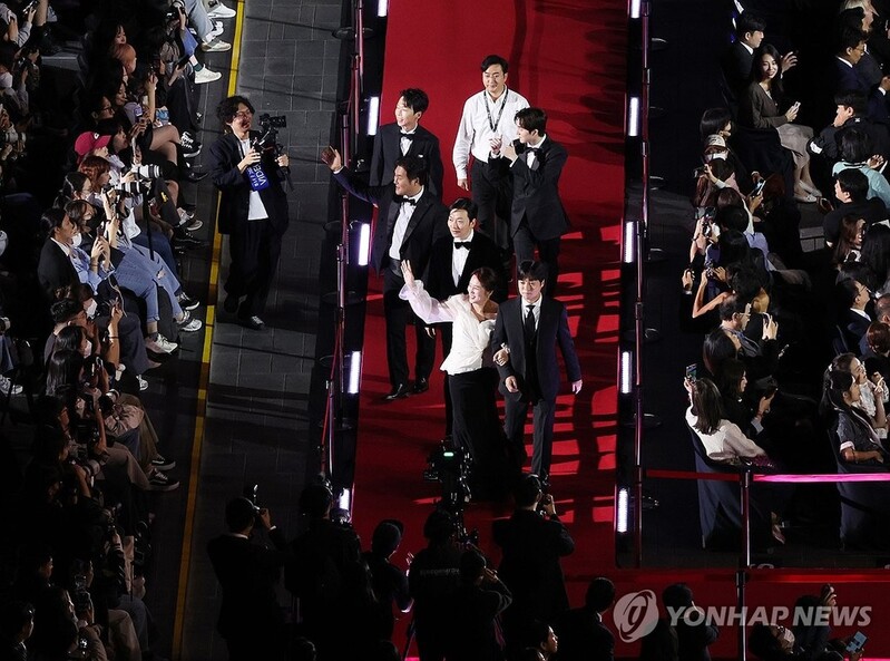 | ▲ 제29회 부산국제영화제 개막 (부산=연합뉴스) 강선배 기자 = 제29회 부산국제영화제 개막식이 열린 2일 오후 부산 해운대구 영화의전당 야외극장에서 초청 게스트 및 영화인들이 레드카펫을 밟으며 관객들에게 인사하고 있다. 2024.10.2 sbkang@yna.co.kr |