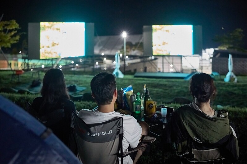 침낭에 누워 야외에서 캠핑하듯 밤새 묵음으로 상영되는 영화를 감상할 수 있는 '비박 상영'은 지난해에 이어 2년째 진행됐다.