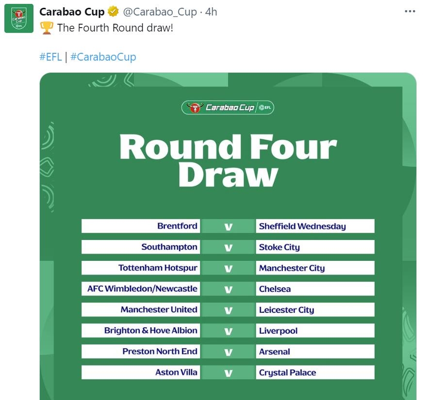 | ▲ 카라바오컵 16강 대진 [카라바오컵 사회관계망서비스 캡처. 재판매 및 DB금지] |