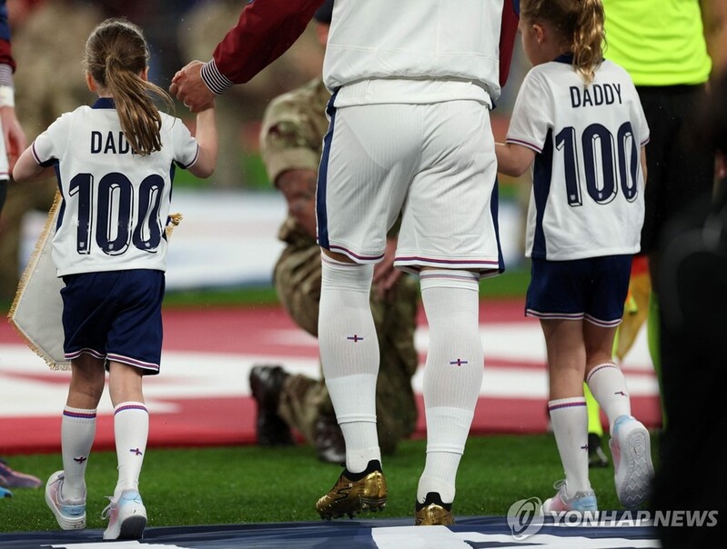 케인은 '등번호 100'에 '아빠'(DADDY)라는 이름이 새겨진 유니폼을 입은 두 딸의 손을 잡고 아내와 함께 그라운드에 등장해 기념 촬영을 했고, A매치 100경기 출전 축하 선물로 잉글랜드 대표팀을 상징하는 삼사자 문양이 붙은 황금색 모자를 받았다.