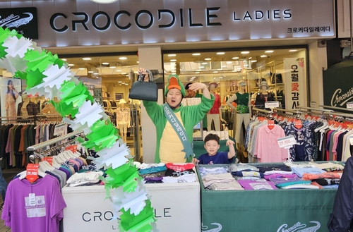 | ▲ 크로커다일레이디 인천구월점 판매 지원에 나선 최준호 패션그룹형지 부회장 [패션그룹형지 제공, 재판매 및 DB 금지] |