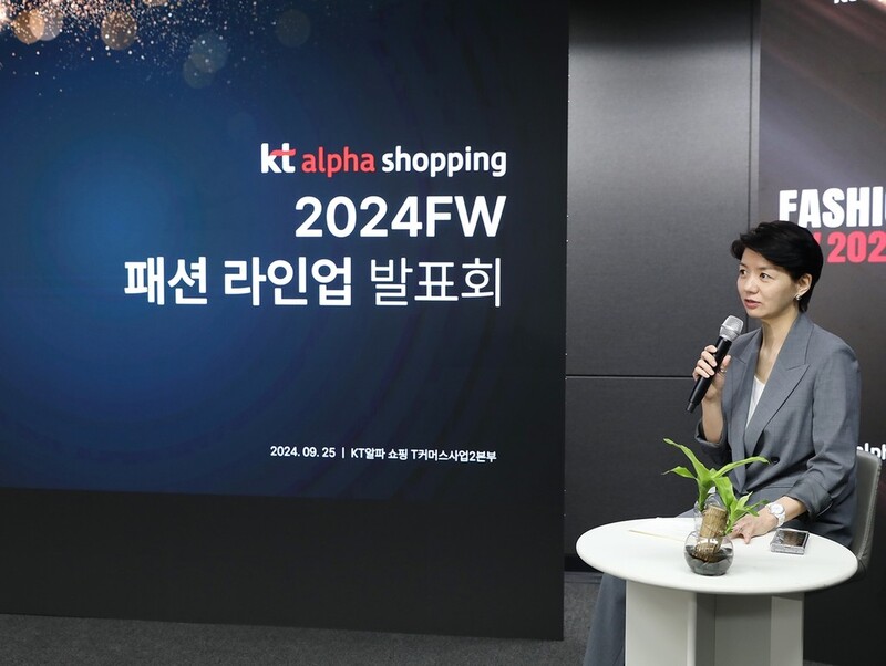 KT알파쇼핑은 25일 목동 미디어센터에서 '올 뉴 스타일'(ALL NEW STYLE)을 주제로 한 '2024FW(가을·겨울) 패션 라인업 발표회'를 개최했다.