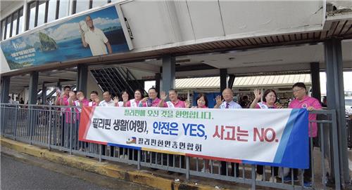 | ▲ '필리핀 여행 안전 캠페인' 진행 필리핀한인총연합회 (서울=연합뉴스) 필리핀 내 9개 지역 한인회 등을 총괄하는 필리핀한인총연합회가 지난달 19일 마닐라 니노이 아키노 국제공항에서 한국에서 오는 방문객을 대상으로 '필리핀 여행 안전 캠페인'을 진행했다. [필리핀한인총연합회 제공. 재판매 및 DB 금지] |