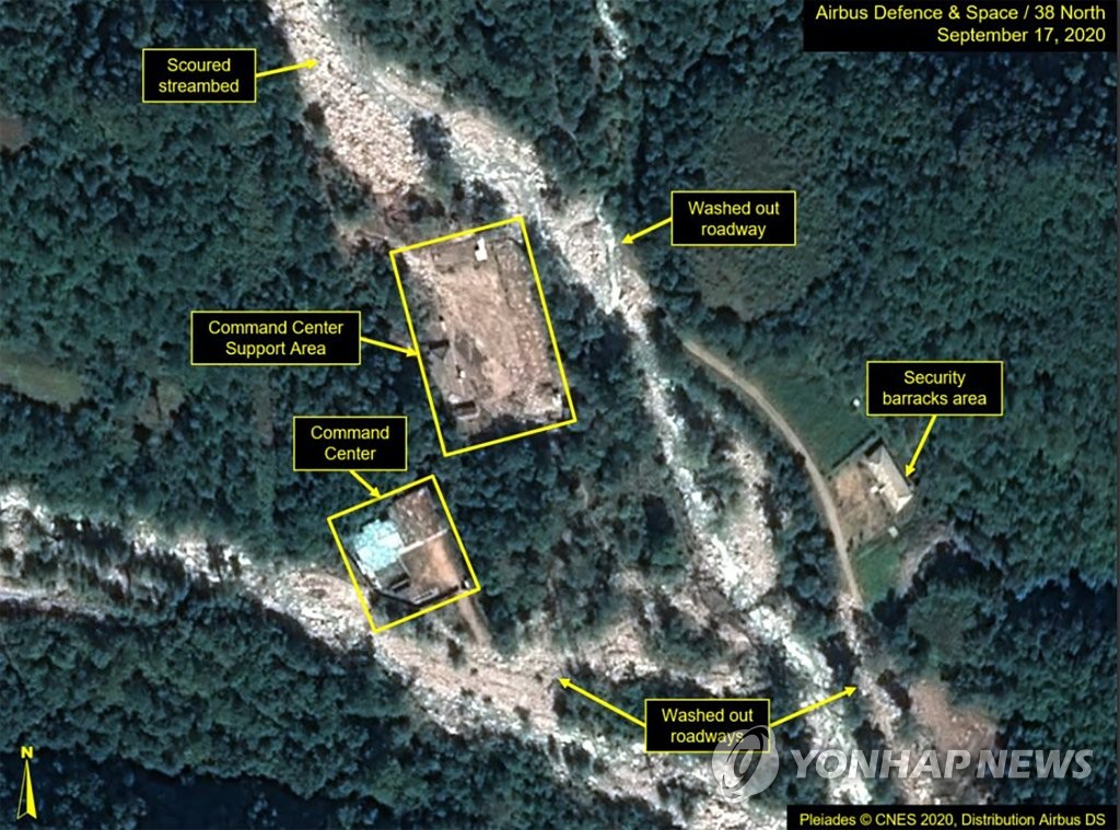 | ▲ This satellite image, taken by Airbus Defence & Space on Sept. 17, 2020, and released by 38 North on Sept. 25, shows the northern and western side of the Punggye-ri nuclear test site in North Korea's mountainous North Hamkyong Province. (PHOTO NOT FOR SALE) (Yonhap) |