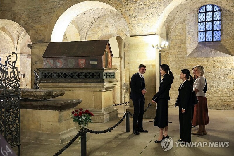 | ▲ 김건희 여사, 체코 영부인과 친교 활동 (프라하=연합뉴스) 진성철 기자 = 윤석열 대통령의 체코 공식 방문에 동행한 김건희 여사가 19일(현지시간) 프라하성의 성 이르지 성당을 파벨 체코 대통령의 부인 에바 파블로바 여사와 함께 방문해 체코의 역사와 문화에 대한 설명을 듣고 있다. 2024.9.20 [공동취재] zjin@yna.co.kr |