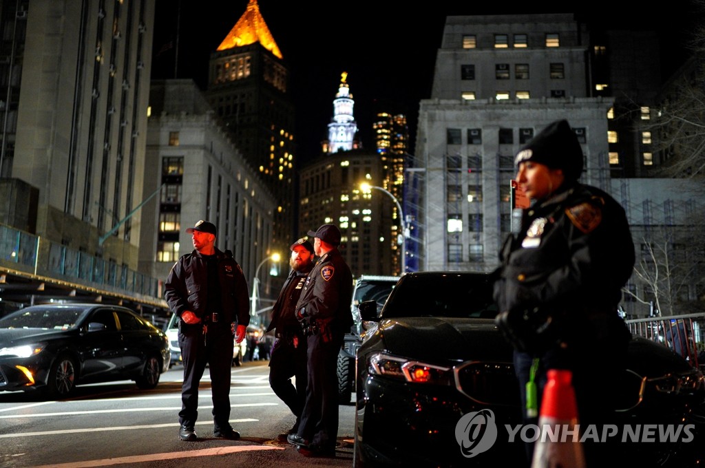 | ▲ 트럼프 기소 후 美 맨해튼 형사법원 앞을 지키는 경찰 (뉴욕 로이터=연합뉴스) 도널드 트럼프 전 미국 대통령이 기소된 30일(현지시간) 경찰이 뉴욕주 맨해튼형사법원 앞을 지키고 있다. 뉴욕 맨해튼 대배심은 이날 성인 배우에게 성추문 입막음용 돈을 지급했다는 의혹과 관련해 트럼프 전 대통령의 기소를 결정했다. 이로써 그는 역대 전·현직 미국 대통령 가운데 최초로 형사 기소되는 불명예를 안았다. 2023.03.31 clynnkim@yna.co.kr |
