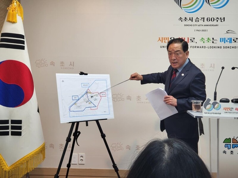 이병선 속초시장은 16일 오전 브리핑을 통해 해당 사업과 관련해 "행정안전부의 감찰 결과 요구한 위법성 해소를 위해 (해당 사업의) 각종 인허가를 취소할 수밖에 없다"고 밝혔다.
