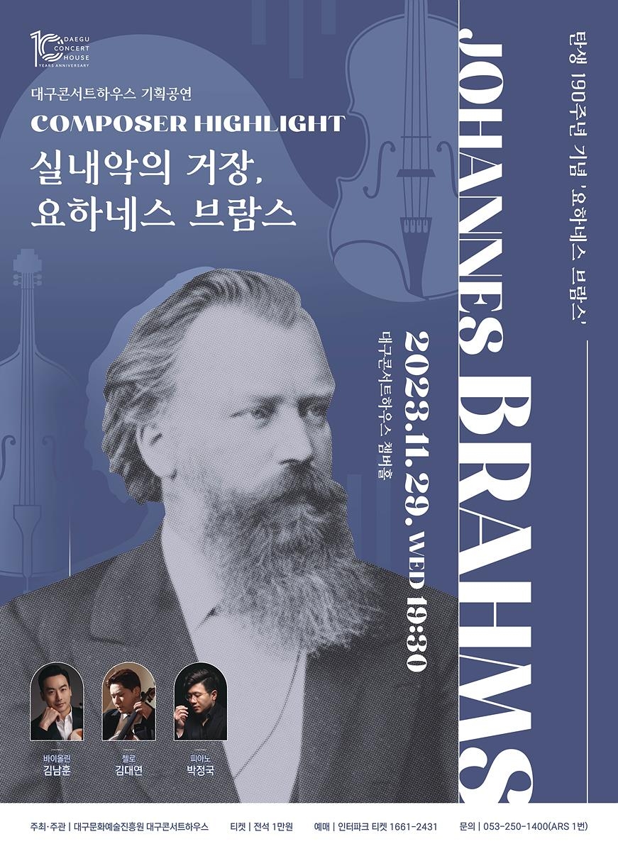 대구콘서트하우스 관계자는 "브람스의 곡이 가진 중후한 매력을 느껴보는 시간이 될 것"이라고 말했다.