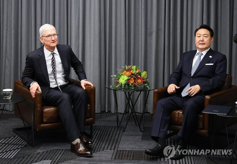 He also met with Apple CEO Tim Cook, who vowed to continue cooperation with and investment in South Korean firms, saying the tech giant would not have been able to reach its current position without the help of the South Korean government and South Korean business partners.