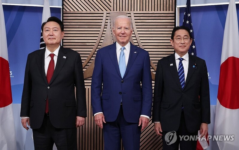 Yoon and Kishida held bilateral talks earlier Thursday, while the three last held a trilateral summit at the Camp David presidential retreat in Maryland in August.