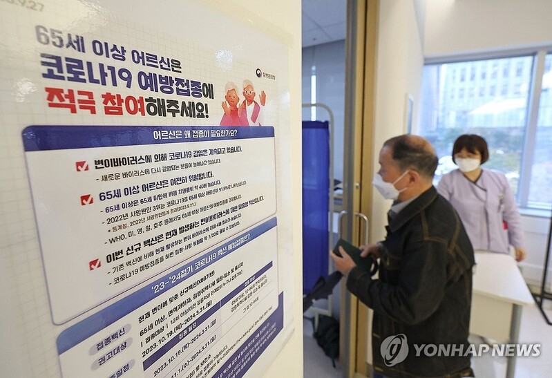 | ▲ A senior citizen visits a clinic in western Seoul for a COVID-19 vaccination, in this file photo taken Oct. 19, 2023. (Yonhap) |