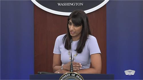 ▲ Department of Defense deputy spokesperson Sabrina Singh is seen answering questions during a daily press briefing at the Pentagon in Washington on Aug. 15, 2023 in this captured image. (Yonhap)