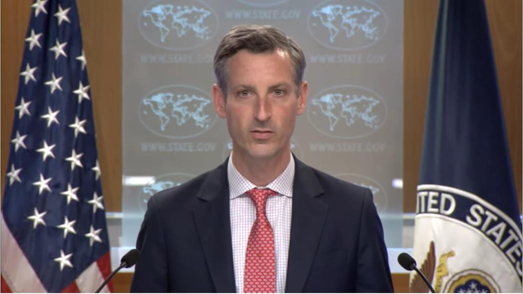 | ▲ Ned Price, spokesperson for the U.S. Department of State, is seen speaking during a daily press briefing at the department in Washington in this captured image. (Yonhap) |