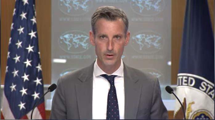 | ▲ State department spokesperson Ned Price is seen speaking during a daily press briefing at the department in Washington on Oct. 11, 2022 in this image captured from the department's website. (Yonhap) |