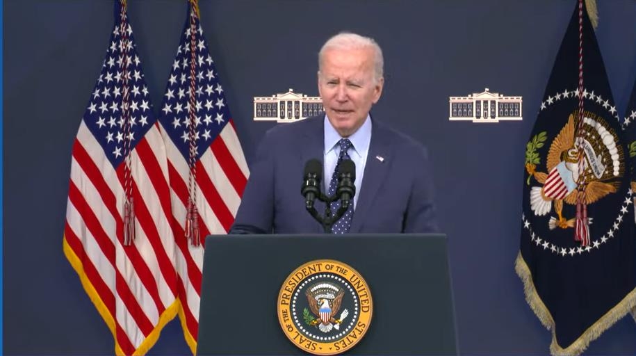 | ▲ U.S. President Joe Biden speaks during a special press conference at the White House in Washington on Feb. 16, 2023 on the Chinese spy balloon shot down over U.S. air space earlier in the month in this captured image. (Yonhap) |