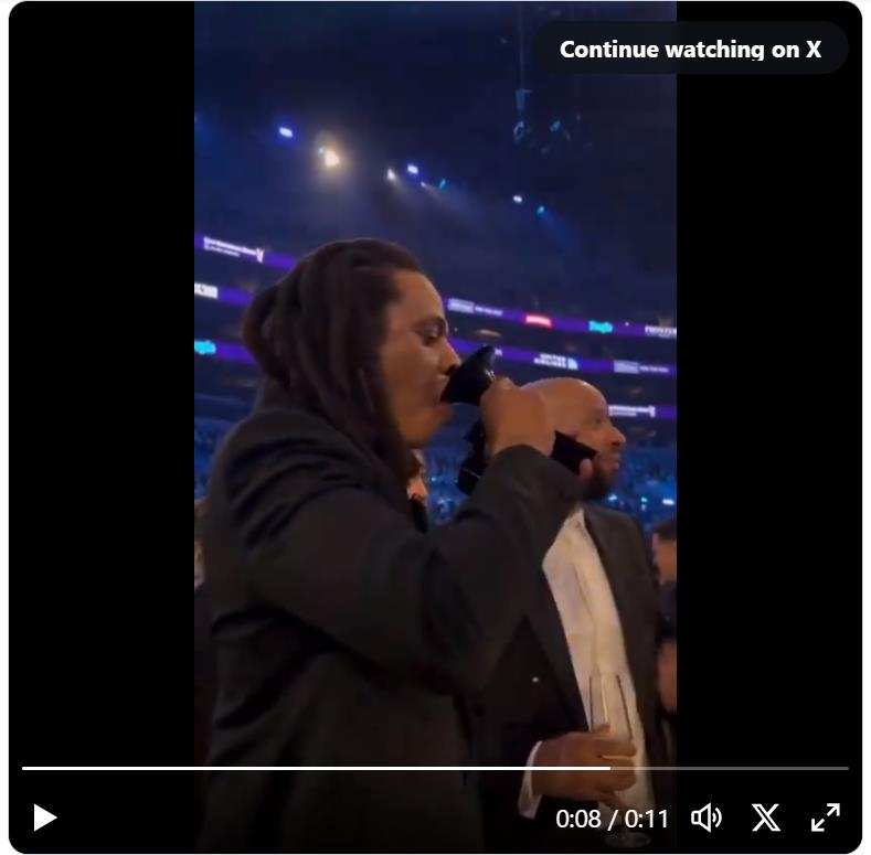 | ▲ 제이지가 그래미 트로피에 술을 따라 마시는 모습이 담긴 동영상 [팝크레이브(Pop Crave) X 계정 게시물 캡처. 재판매 및 DB 금지] |