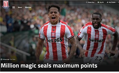 | ▲ 스토크 시티 승리 알리는 홈페이지 [스토크 시티 홈페이지 캡처. 재판매 및 DB 금지] |