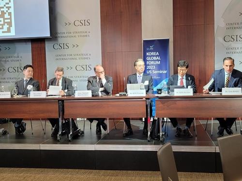 | ▲ Experts discuss Korean Peninsula issues at the Korea Global Forum jointly hosted by the unification ministry and the Center for Strategic and International Studies at CSIS headquarters in Washington on Nov. 6, 2023. (Yonhap) |