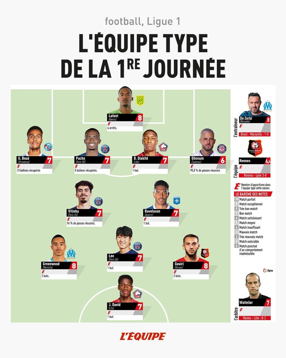 | ▲ 레퀴프 선정 '리그1 1라운드 베스트 11'에 포함된 이강인 [레퀴프 X 캡처. 재판매 및 DB 금지] |
