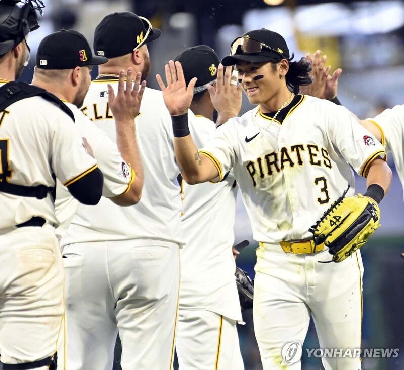 배지환은 중견수 뜬공을 글러브에 담은 뒤 2루에 정확하게 송구해 태그업을 시도한 1루 주자를 아웃시켰다.