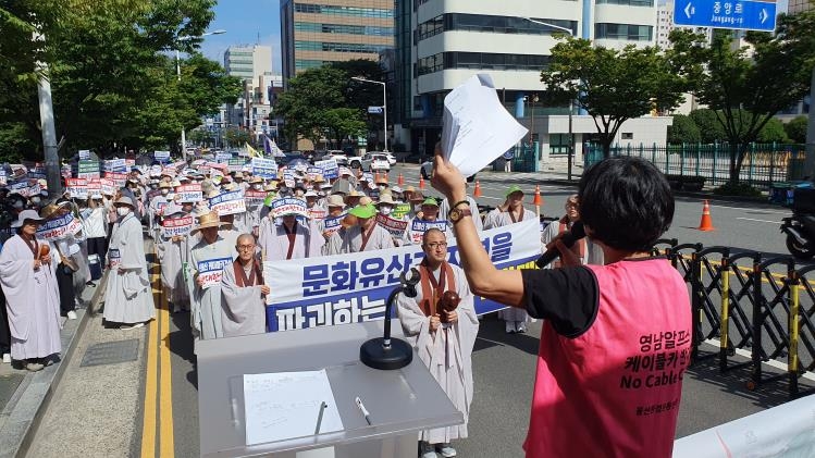 "케이블카 설치하면, 통도사 가치 훼손" 불교계 궐기대회