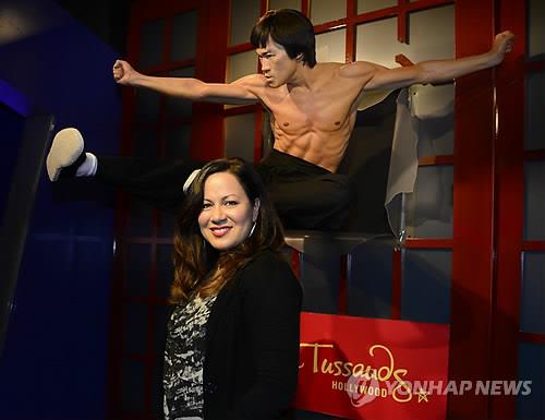 | ▲ 2014년 이소룡 밀랍인형 앞에서 포즈를 취한 딸 섀넌 리 [EPA=연합뉴스 자료사진] |