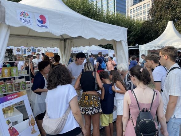 | ▲ 붐비는 독일 프랑크푸르트 박물관 강변축제 '충남 홍보 부스' [충남도 제공. 재판매 및 DB 금지] |