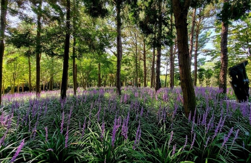 분재정원 산림욕장 주변에 심어진 40만 본의 맥문동은 최근 만개했다.