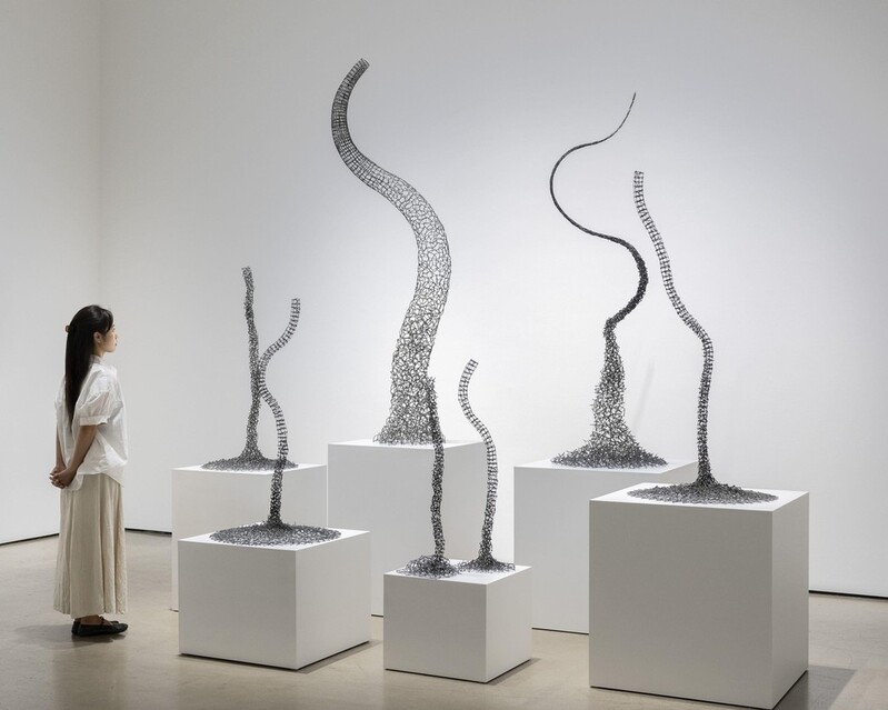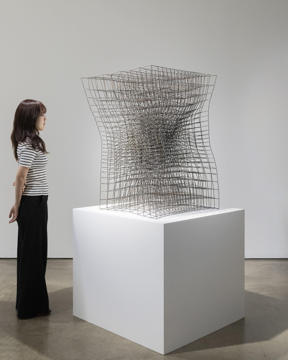 전시에서는 1960년대 초기작부터 최근작까지 작업의 변화 과정을 살필 수 있다. 최신작 '헤븐 앤 어스'(Heaven and Earth)는 바닥에서부터 짧은 철선을 지그재그 방식으로 쌓아 올린 작업이다. 전시는 10월20일까지.