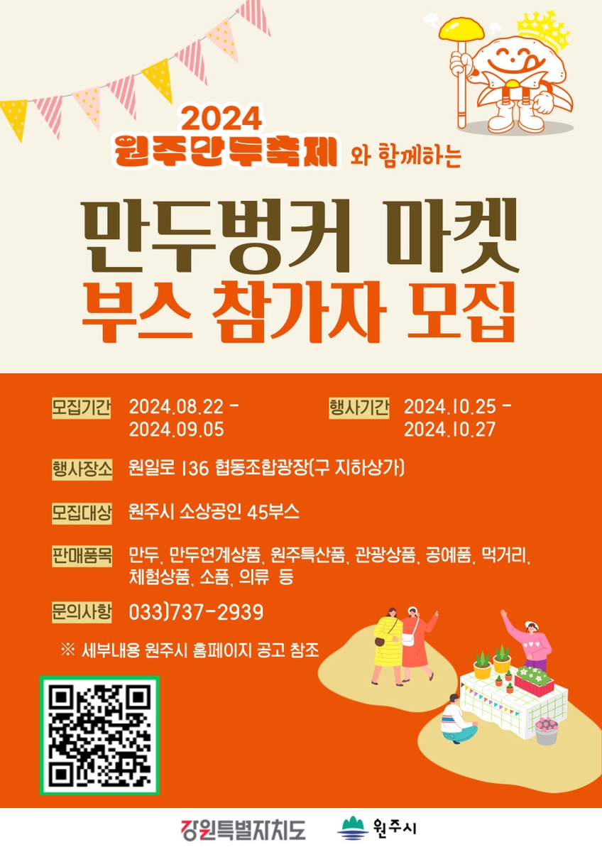 이와 함께 시는 원주만두축제와 연계한 장터 행사인 '만두벙커 마켓'에 참가할 소상공인을 모집한다.