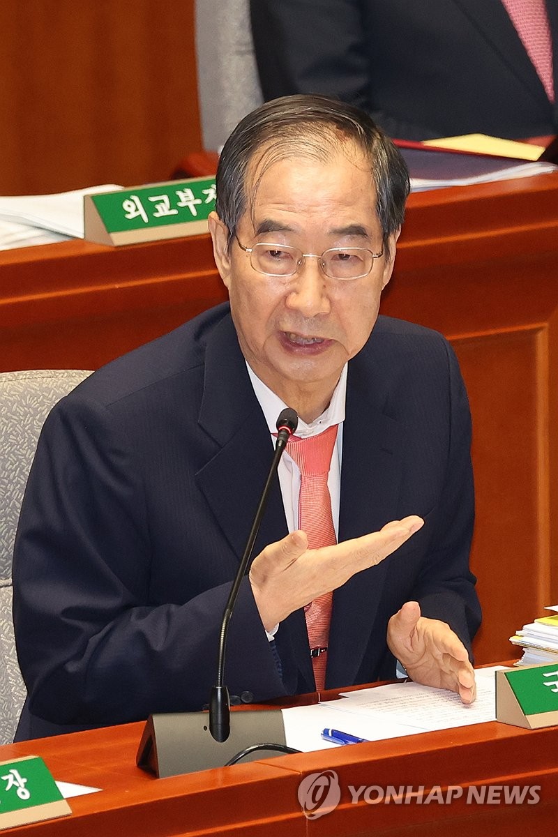 | ▲ 답변하는 한덕수 총리 (서울=연합뉴스) 김주성 기자 = 한덕수 국무총리가 2일 오전 국회에서 2023 회계연도 결산심사를 위해 열린 예산결산특별위원회 전체회의에서 종합정책질의에 답하고 있다. 2024.9.2 utzza@yna.co.kr |
