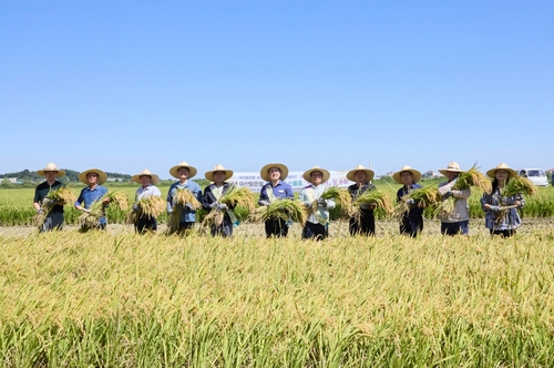 이번에 수확한 벼는 지난 5월 3일 모내기 이후 120일 재배한 조생종 '해담'으로, 재배 안정성이 뛰어나고 우수한 밥맛으로 알려진 품종이다.