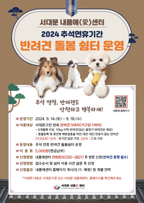 서대문구, 추석 연휴 '반려견 돌봄 쉼터' 운영