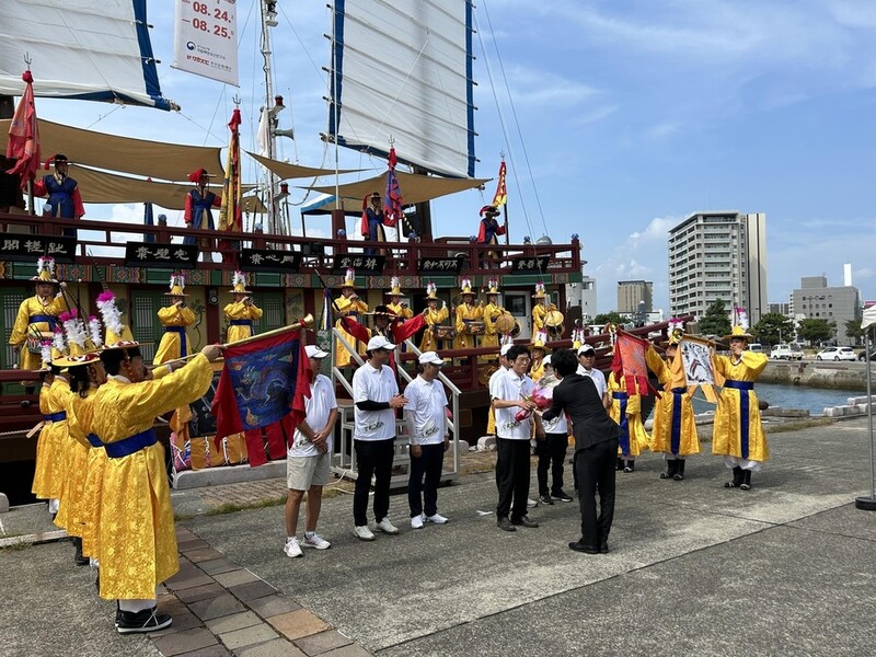 조선통신사선이 과거 뱃길을 재현해 일본에 도착한 건 지난해에 이어 이번이 두 번째다.