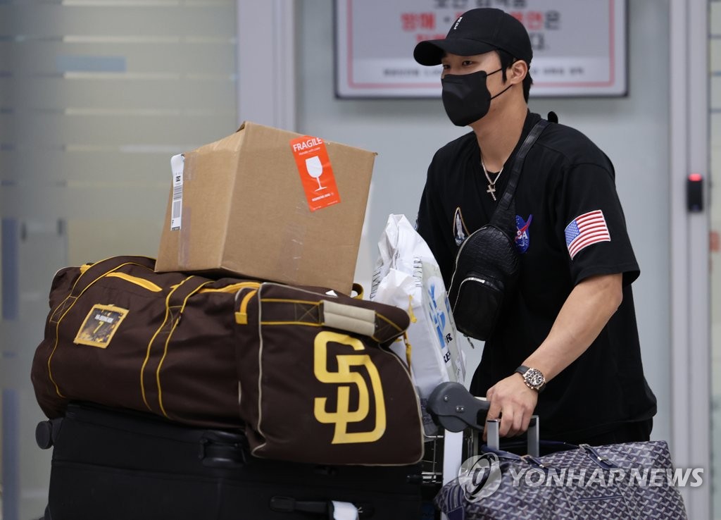 (영종도=연합뉴스) 김경윤 기자 = 치열한 경쟁과 견제를 뚫고 미국프로야구 메이저리그(MLB) 주전급 선수로 성장한 김하성(27·샌디에이고 파드리스)이 늠름한 모습으로 금의환향했다.