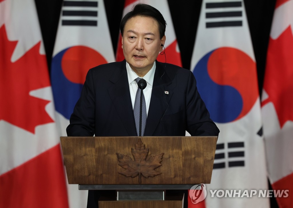 Yoon arrived in Canada the previous day on a two-day visit that took him first to Toronto for separate meetings with AI experts and Korean residents, and then to the Canadian capital on Friday for a summit with Trudeau.
