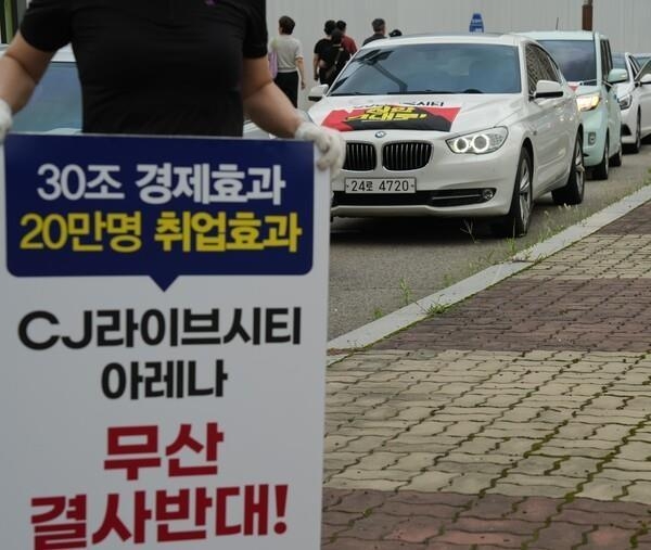 시민들은 승용차에 'CJ라이브시티 공영개발 결사반대' 플래카드를 내건 채 6차례 차량 시위를 벌이고 김 지사 규탄 집회를 열면서 국민청원 홍보활동을 병행했다.