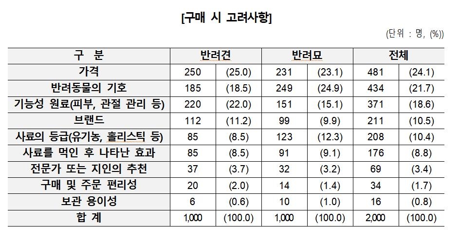 ▲ 반려동물 사료 구매시 고려사항 [한국소비자원 제공. 재판매 및 DB 금지]